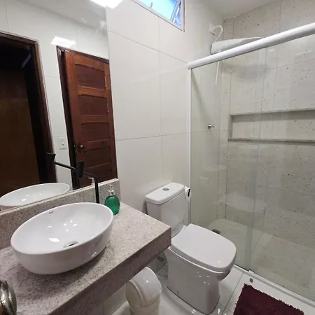 Chale Aconchegante Com Vista Para Piscina villa provides inner courtyard views. Bathroom facilities at the Gravata property also include a separate toilet and a shower.